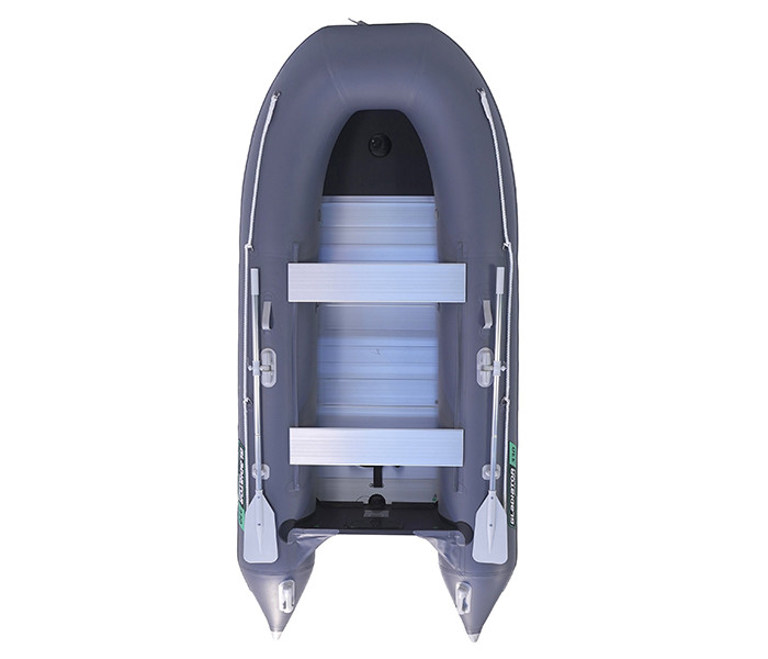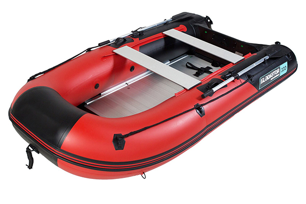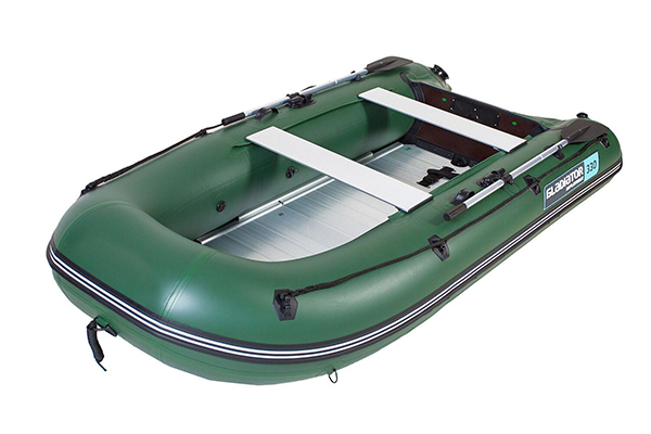 Имеет алюминиевый пайол с антискользяещей насечкой с комплектом алюминиевых стрингеров. Самый удобный в использовании вид пола: его не надо просушивать, невозможно поцарапать или проколоть.