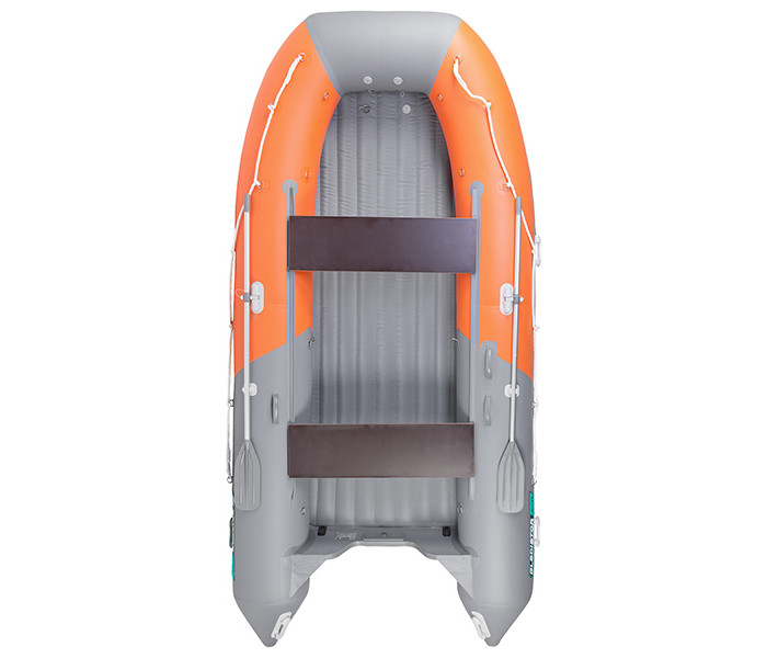В комплекте | 2 алюминиевых весла, 2 фанерных сиденья, Вклеенное НДНД, Клапан сброса избыточного давления + баллон, Крепление сидений ликпаз-ликтрос, Привальный брус, Буксировочные ручки (пластик), Пассажирские ручки (ПВХ), Носовая ручка, Леерная верёвка, Ножной насос Bravo 9, Сумка для лодки, Ремкомплект |
