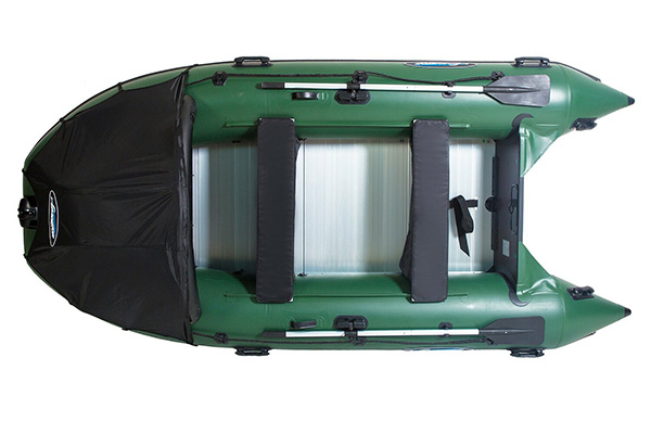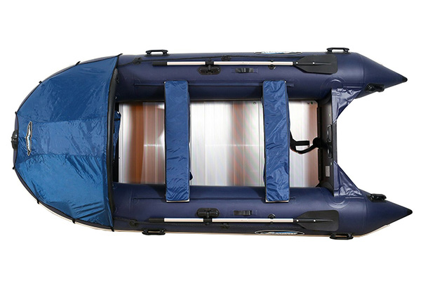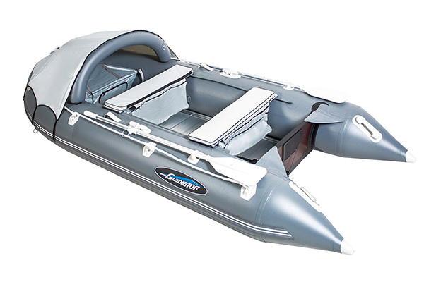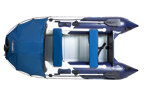 Отличается расширенной комплектацией: помимо 2 алюминиевых сидений с креплением «ликпаз-ликтрос», позволяющим менять их положение в кокпите, она оснащена мягкими накладками на сиденья, на которых удобно располагаться при поездке или рыбалке; съемными подседельными сумками, куда можно сложить мелочь или припасы; носовым тентом (кокпит лодки ПВХ, оснащенной тентом, будет отлично защищен от брызг); носовой сумкой, куда поместится ваша одежда и до конца поездки останется чистой и сухой.