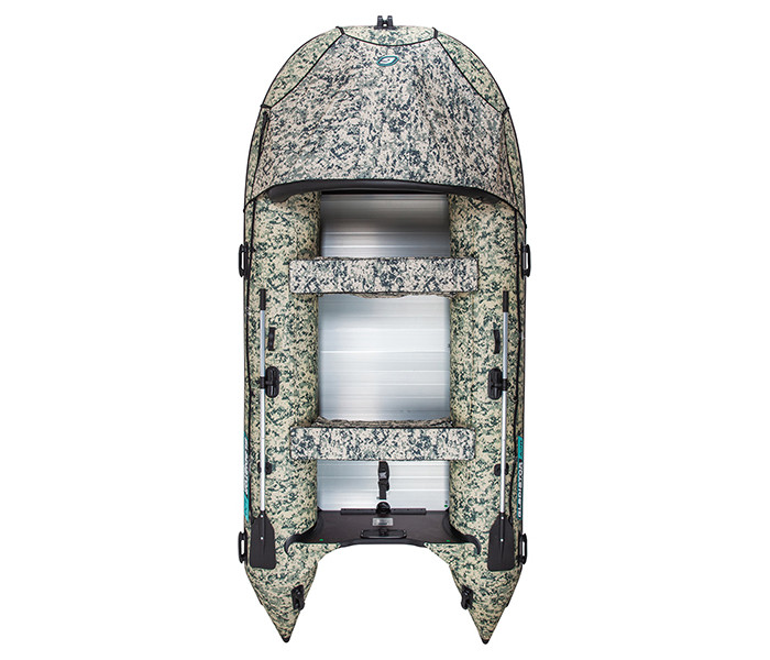 Отличается расширенной комплектацией: помимо 2 алюминиевых сидений с креплением «ликпаз-ликтрос», позволяющим менять их положение в кокпите, она оснащена мягкими накладками на сиденья, на которых удобно располагаться при поездке или рыбалке; съемными подседельными сумками, куда можно сложить мелочь или припасы; носовым тентом (кокпит лодки ПВХ, оснащенной тентом, будет отлично защищен от брызг); носовой сумкой, куда поместится ваша одежда и до конца поездки останется чистой и сухой.